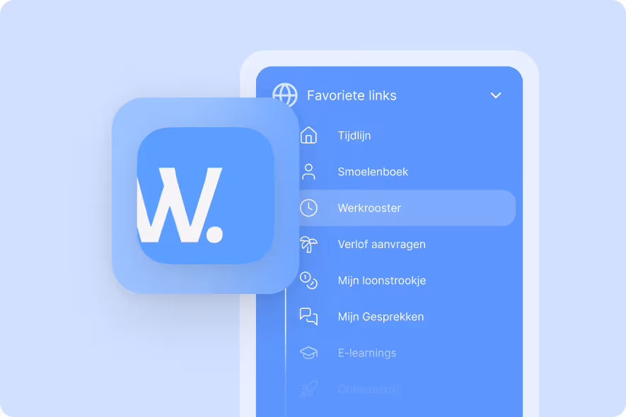 Jouw medewerkers werken zoveel mogelijk vanuit één app: jouw eigen bedrijfsapp. Loonstroken, taken en verlofsaldo worden direct getoond.
