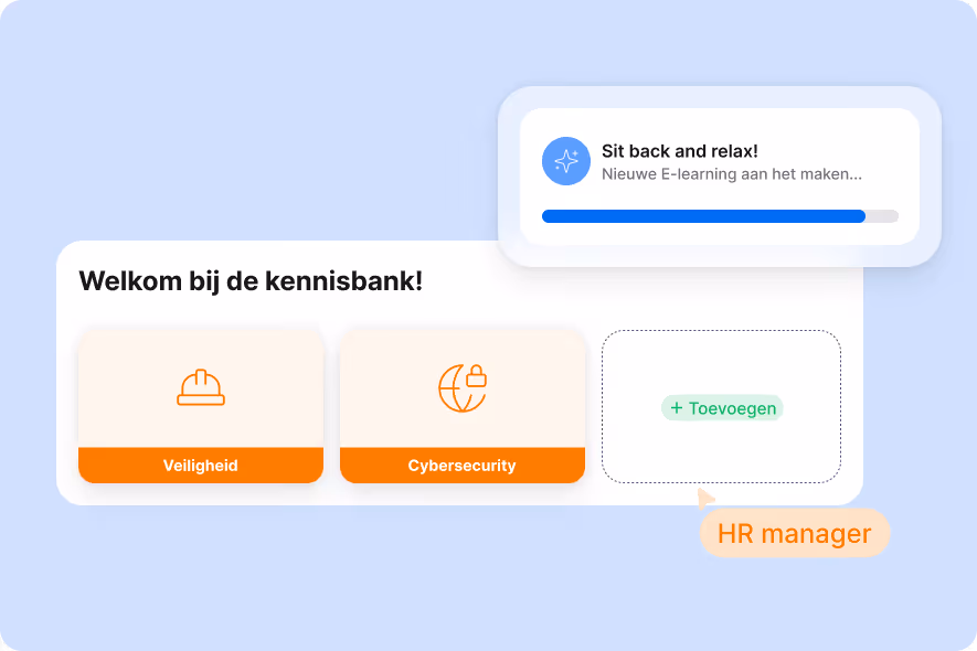 Je eigen AI-assistent beantwoordt alle vragen van jouw medewerkers. En met onze AI-generator maak je in een handomdraai de beste HR-content: van e-learnings tot nieuwsbrieven.