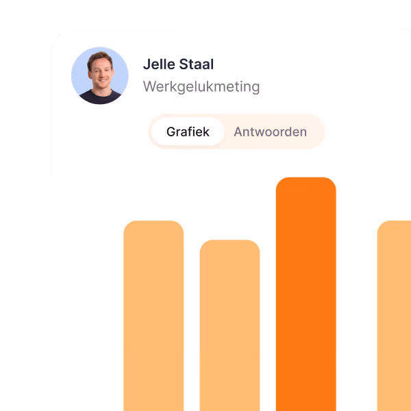 Voorspel verzuim en verloop al voor het gebeurt. Met de dashboarding heb je een actueel overzicht van werkgeluk, prestaties en ontwikkeling.