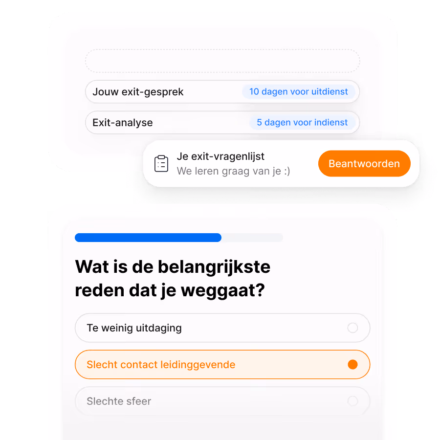 Van de eerste dag tot het vertrek: Welder biedt inzicht in de voortgang en beleving van medewerkers gedurende hun hele reis. Krijg waardevolle feedback tijdens onboarding én offboarding, en stuur actief bij waar nodig. Dit helpt niet alleen bij een succesvolle integratie, maar ook bij het verbeteren van de medewerkerervaring en het verminderen van verloop.