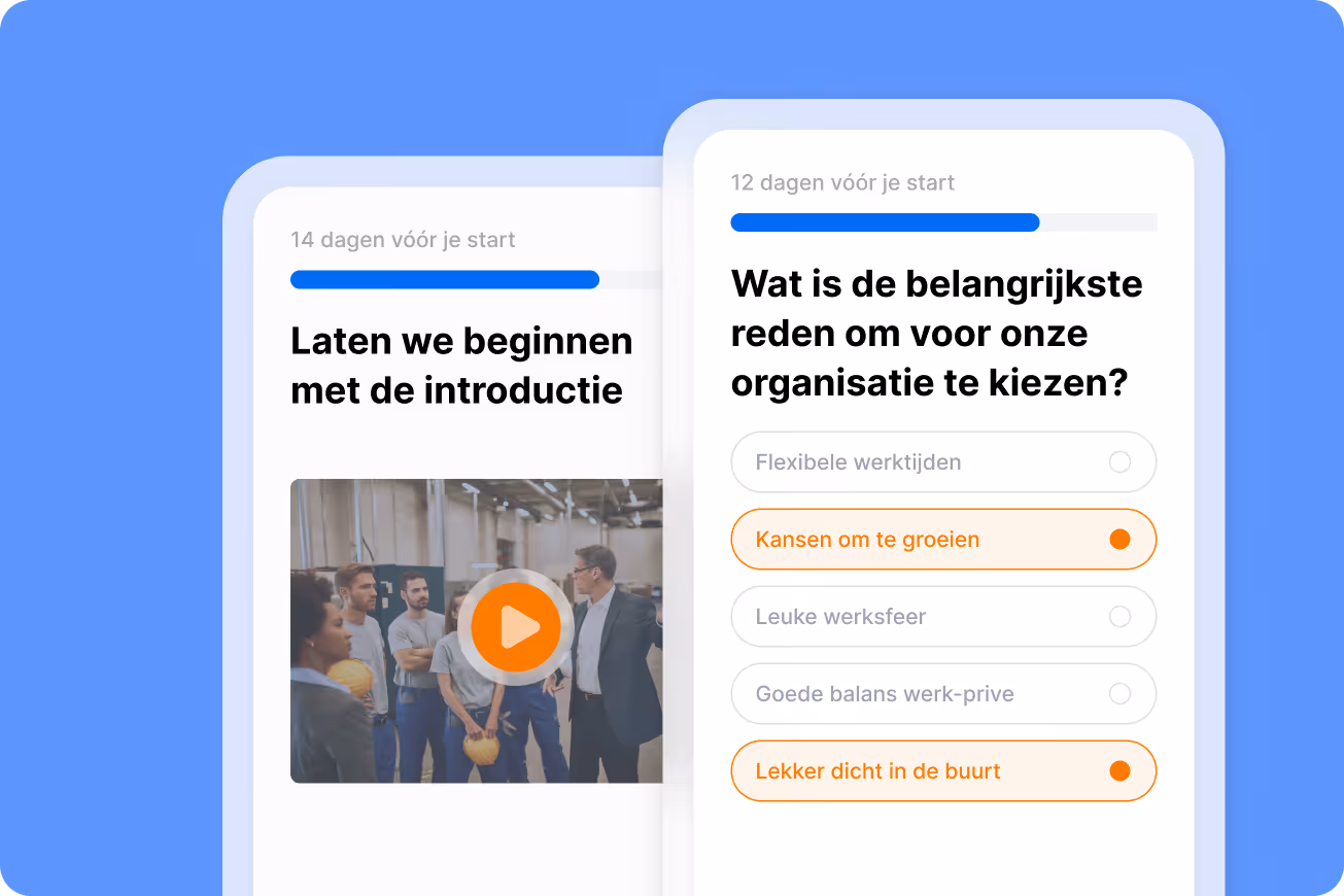 Met een gefaseerde aanpak die al start vóór de eerste werkdag, een persoonlijke en interactieve benadering en directe toegang tot de juiste kennis, zorg je ervoor dat nieuwe medewerkers zich snel thuis voelen én snel productief worden.